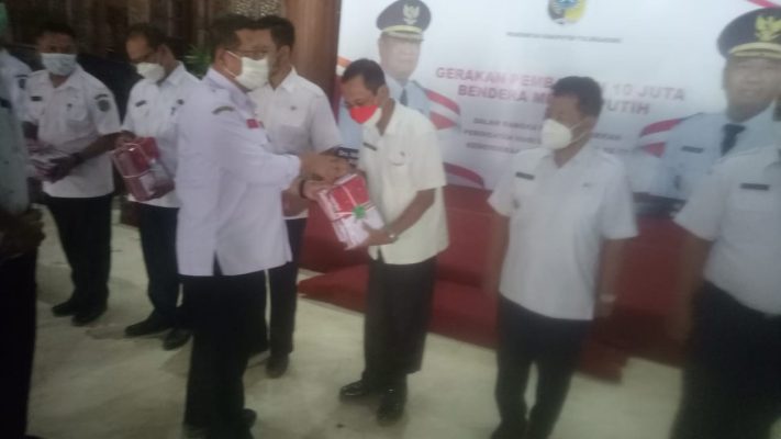 Rabu, 10/08/22, bertempat di pendopo Kongas Arum Kusumaning Bongso Kabupaten Tulungagung propinsi Jawa Timur,secara simbolik diserahkan sang saka merah putih sebanyak sepuluh ribu bendera kepada 19 Camat sekabupaten Tulungagung,dalam acara itu dilaksanakan Oleh Bupati Drs.Maryoto Bhirowo, MM didampingi Drs. Bambang Triono selaku kepala Bakesbangpol Tulungagung.