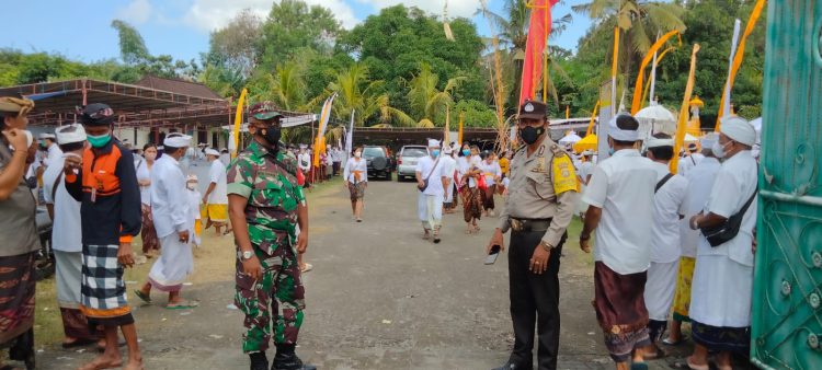 Persindonesia.com Jembrana – Babinsa Desa Batuagung Koramil 1617-01/Negara Pelda Nyoman Suarken bersinergi dengan Bhabinkamtibmas dan Pecalang melaksanakan pengamanan berlangsungnya Upacara Karya Atma Wedana Mamukur (Ngaben Massal) yang dilaksanakan di Pasraman Santhi Pranawa, Banjar Tegal Asih, Desa Batuagung Kecamatan Jembrana, Kabupten Jembrana, Kamis (10/03/2022)