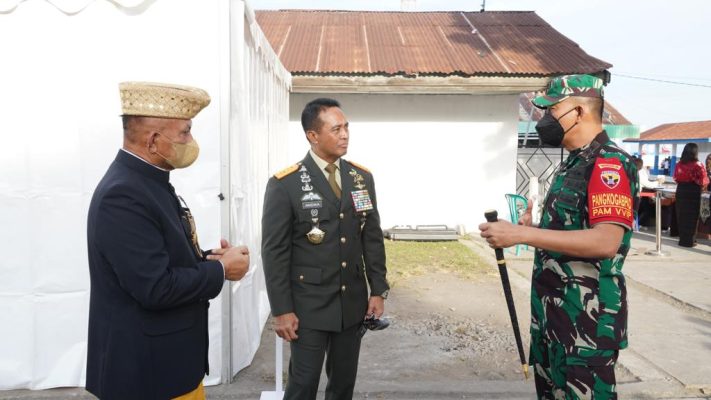 Ende – Panglima Tentara Nasional Indonesia, Jenderal TNI Andika Perkasa, S.E., M.A., M.Sc., M.Phil., Ph.D., menghadiri Upacara Peringatan Hari Lahir Pancasila Tahun 2022 yang digelar secara terpusat di Lapangan Pancasila, Kelurahan Kotaraja, Kecamatan Ende Utara, Kabupaten Ende, Provinsi Nusa Tenggara Timur.