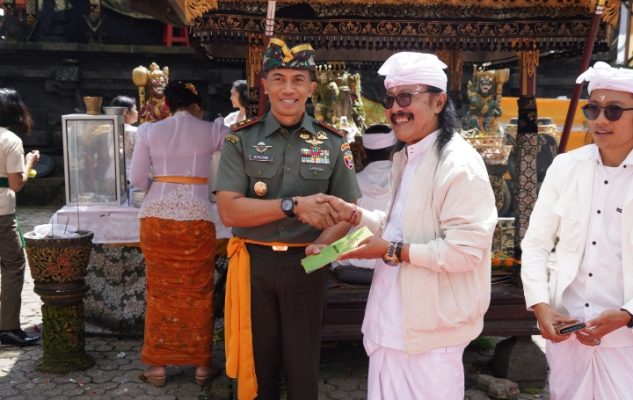 Bali  – Pangdam IX/Udayana Mayjen TNI Bambang Trisnohadi didampingi Ketua Persit Kartika Chandra Kirana Daerah IX/Udayana Ny. Dian Bambang Trisnohadi beserta rombongan mengunjungi beberapa Pura yang termasuk Pura Sad Kahyangan Jagad di Bali, pada Selasa (19/3/2024).