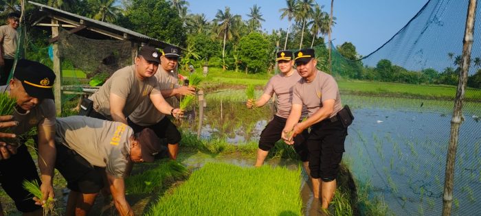Kapolres Jembrana, AKBP Endang Tri Purwanto, S.I.K., M.Si., menyatakan komitmennya untuk terus mendukung ketahanan pangan khususnya di wilayah Jembrana. Program ini dilaksanakan secara berkesinambungan, kali ini dalam bentuk penanaman padi yang digelar pada pukul 07.30 WITA dan dipimpin langsung oleh Kapolsek Kawasan Pelabuhan Gilimanuk Kompol I Komang Muliyadi, S.H., M.M. Turut hadir dalam kegiatan tersebut sejumlah pejabat kepolisian setempat, antara lain, : Ps. Kabag Sumda Polres Jembrana, AKP I Komang Renta, S.H., Kapolsek Negara Kompol I Kadek Ardika, S.Sos., Kasat Binmas Polres Jembrana AKP I Nyoman Pasar, S.H., Kanit Binmas Polsek Kawasan Pelabuhan Gilimanuk Iptu I Gst Kt Juniadi Astama, serta Kanit Sabhara Polsek Kawasan Pelabuhan Gilimanuk Iptu I Nengah Armika dan sejumlah staf Polsek.