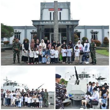 “Sekarang ini dalam rangka acara perpisahan, murid KB Paud Anugrah Pontianak datang berkunjung dan mereka langsung disambut hangat para prajurit yang memandu mereka untuk berkeliling melihat langsung kapal-kapal perang yang sedang sandar di dermaga”. ucap Aspotmar Danlantamal XII. (Dispen Lantamal XII).