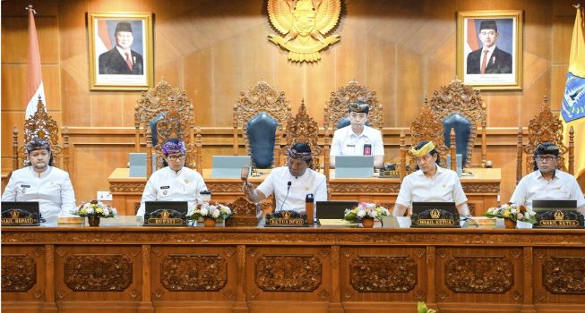 Badung persindonesia.com – Setelah pelaksanaan Apel Peringatan Hari Ulang Tahun (HUT) ke-16 Ibu Kota Badung, Pemerintah Kabupaten Badung melanjutkan rangkaian peringatan dengan menggelar Rapat Paripurna Istimewa di Ruang Sidang Utama Gosana, Sekretariat DPRD Badung, Minggu (16/11/2025). Sidang istimewa ini mengangkat tema “Rumaketing Taksuning Bhuwana”, yang menegaskan pentingnya penyatuan potensi daerah untuk memperkuat pondasi pembangunan Badung.