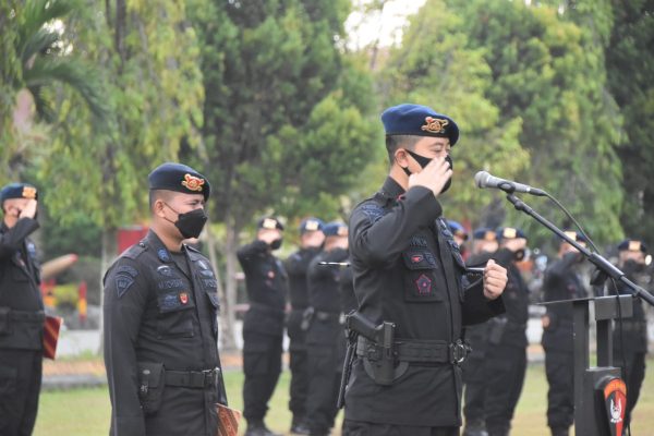 Persindonesia.com Pekanbaru – upacara pembukaan bintradisi dan latihan dasar kemampuan Brimob bintara lulusan SPN Polda Riau Tahun 2021 penempatan Satuan Brimob Polda Riau dipimpin oleh Danden Gegana Sat Brimob Polda Riau Kompol Arvin Hariyadi, S.I.K