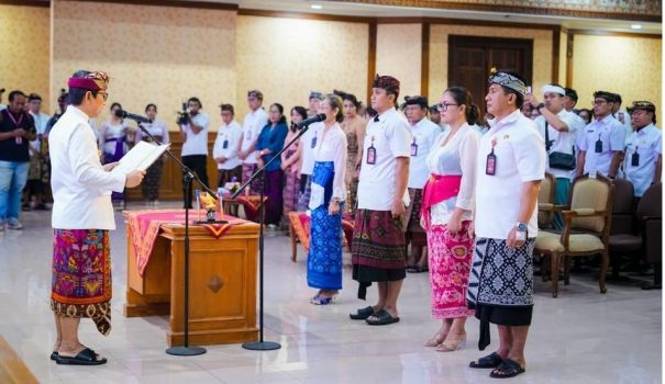 MANGUPURA Persindonesia.com – Bupati Badung I Wayan Adi Arnawa melantik dan mengambil sumpah jabatan 234 pejabat di lingkungan Pemerintah Kabupaten Badung, Rabu (11/2), bertempat di Ruang Pertemuan Kertha Gosana, Puspem Badung. Pejabat yang dilantik terdiri atas 13 Pejabat Pimpinan Tinggi Pratama (Eselon II/b), 72 Pejabat Administrator (Eselon III/a sebanyak 24 orang dan Eselon III/b sebanyak 48 orang), 78 Pejabat Pengawas (Eselon IV/a sebanyak 43 orang dan Eselon IV/b sebanyak 35 orang), serta 71 Pejabat Fungsional.