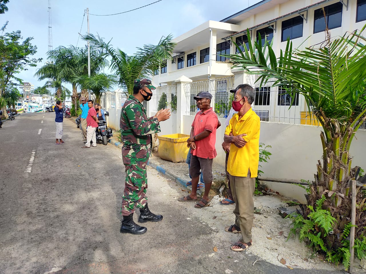 Seperti halnya Serda Yudisen Babinsa Desa Aik Katekok, Koramil 414-01/Tanjungpandan, Kamis 22/04/2021 melaksanakan kegiatan  komsos di wilayah desa binaanya dengan memberikan himbau kepada warganya untuk mematuhi protokol kesehatan seperti memakai masker, mencuci tangan, menjaga jarak serta menghindari kerumunan.