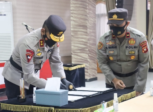 Kapolda Gorontalo Irjen Pol Dr Akhmad Wiyagus, S.I.K, M.Si, M.M melalui Kabid Humas Polda Gorontalo Kombes Pol. Wahyu Tri Cahyono, S.I.K kepada sejumlah awak media mengatakan saat ini, kita melaksanakan upacara Sertijab para PJU berbeda dari biasanya hal ini dilakukan, karena kita harus mengikuti prosedur / protokol kesehatan demi mencegah penyebaran Covid-19.