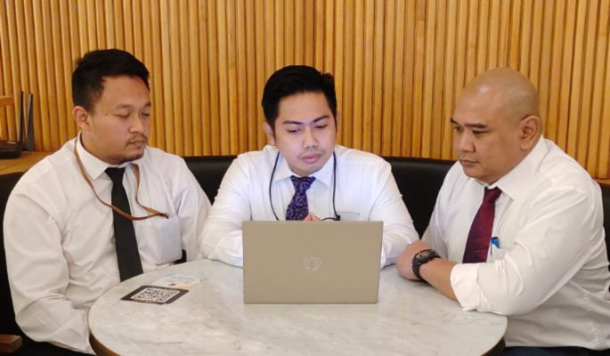 SURABAYA, Persindonesia – Tiga team Divisi Hukum Komunitas Jurnalis Jawa Timur (KJJT). Sugeng Apryanto SH (kiri), Muhammad Naim SH.MH (tengah) Wawan Teguh N. SH. (kanan) saat ditemui resto Mall Grand City Surabaya (29/07/2022).