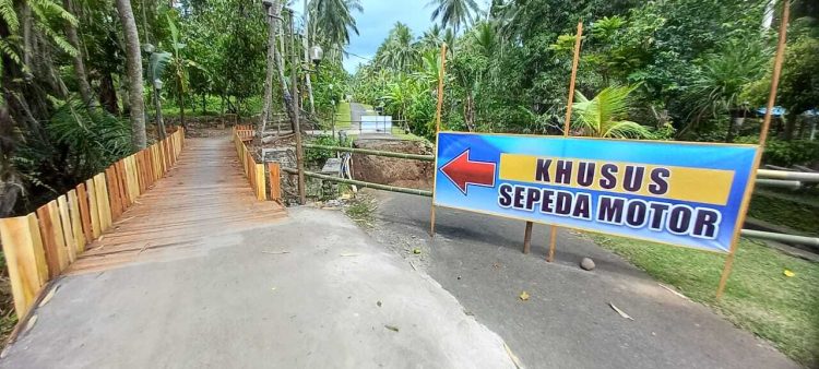 Sedangkan jembatan utama yang putus akibat akibat banjir bandang dan longsor diberikan bentangan bambu sebagai pengaman dan agar warga tidak melintas serta dipasang lampu penerangan jalan untuk dimalam hari. Setelah selesai dibangun, jembatan tersebut diuji kelayakannya oleh Bhabinkamtibmas dan Kepala Kewilayahan Banjar Ambyarsari serta beberapa warga.