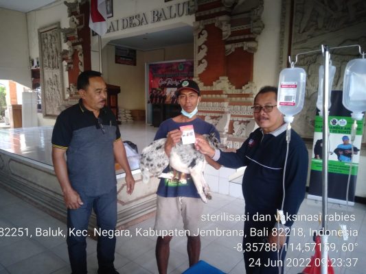 Mendapatkan bantuan ribuan dosis vaksin HPR, Dinas Pertanian dan Pangan Jembrana melalui Keswan Kesmavet langsung melakukan vaksinasi masal dan juga sterilisasi diwilayah zona merah rabies seperti Desa Baluk, Kemacatan Negara, Kabupaten Jembrana dan juga di Kelurahan Gilimanuk, Kecamatan Melaya, Kabupaten Jembrana. Jumat (24/6/2022).