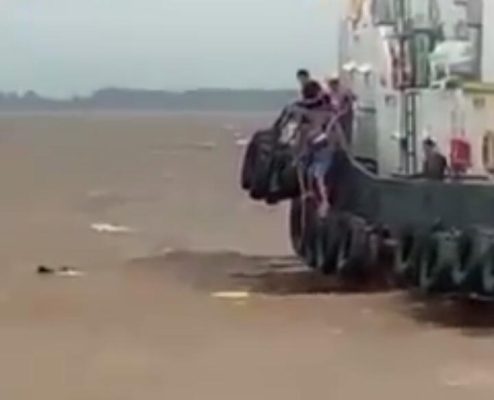 Tugboat Alfa Omega yang sedang menarik kapal Tongkang rute Banjarmasin menuju tabunio, Anak Buah kapal (ABK)yang melihat mereka langsung melemparkan pelampung kepada ke dua nelayan tersebut, kedua nya naik ke kapal Tugboat tersebut.