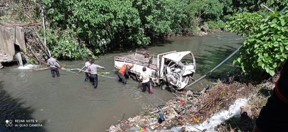 Klungkung | persindonesia.com – Sebuah mobil bak terbuka mengangkut 8 orang pekerja di Jalan Raya Baypas Ida Bagus Mantra tepatnya di Tukad Jinah Ds. Sidayu sisi selatan, Rabu 21/4/21 siang terperosok ke jurang.
