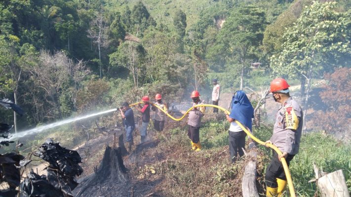 Satuan Brimob Polda Aceh Kompi 4 Batalyon A Pelopor dibawah pimpinan AKP Hamdani, S.E. melaksanakan pemadaman kebakaran hutan dan lahan di puloe ie Desa Dayah Baro Kec. Krueng Sabe Kab. Aceh Jaya, Selasa (01/02/2022).
