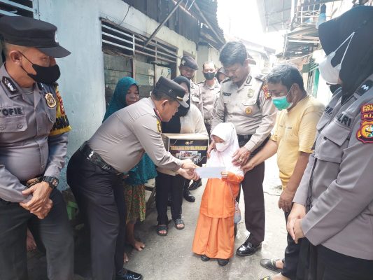 Pada kesempatan ini sekira pukul 09.15 wib, Kapolsek beserta rombongan mengunjungi keluarga Anak Yatim yang berada di jln KH. Wahid Hasyim Gg. Petak 20 Kel. Sumahilang Kec. Pekanbaru Kota dengan mendatangi keluarga ibu Sri Hartuti dan ibu Yuliswarni untuk menyerahkan bantuan berupa sembako dan santunan.