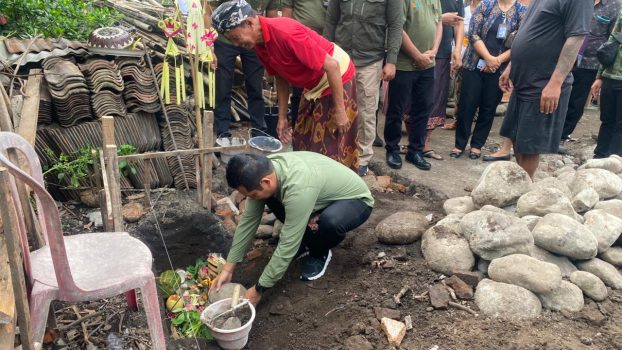 Bupati Jembrana, I Made Kembang Hartawan, memberikan apresiasi atas pelaksanaan program tersebut dengan hadir secara langsung untuk melakukan peletakan batu pertama program Bedah Rumah di Lingkungan Dauhwaru, Kelurahan Dauhwaru, Kecamatan Negara, pada Selasa (27/1).