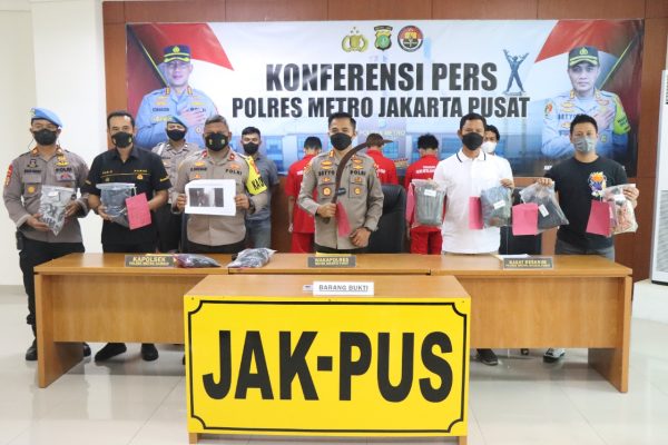 Persindonesia.com Jakarta – Polres Metro Jakarta Pusat menggelar Konferensi Pers terkait pengungkapan pelaku perkara dugaan tindak pidana Penganiayaan yang dilakukan oleh kelompok geng motor Poyok 09 JR di Aula lantai 3 Mapolres, Kamis (16/06/2022).