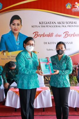 Dalam kegiatan aksi sosial kali ini diserahkan bantuan 1 ton beras dengan sasaran sebanyak 50 orang @20 kg dengan perincian penerima terdiri dari 10 orang balita gizi buruk/ kurang gizi, 10 orang ibu hamil kekurangan energi khusus (KEK) , 10 orang lansia, 10 orang penyandang disabilitas dan 10 orang kader PKK. Disamping itu juga diserahkan 80 kotak susu bagi 10 balita gizi buruk/kurang gizi serta 80 kotak susu untuk lansia, ibu hamil, difabel dan kader PKK serta telor 50 krat @ 1 krat untuk lansia, difabel, ibu hamil, balita dan kader PKK. Selain itu juga diserahkan bantuan beras sebanyak 1 ton dari Bapak Gubernur Bali, Wayan Koster yang diserahkan secara simbolis oleh Ketua FPPI Provinsi Bali kepada Ketua TP PKK Kota Denpasar yang selanjutnya didistribusikan ke masyarakat yang membutuhkan.