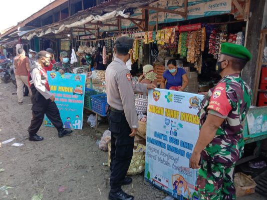 Persindonesia.com Jembrana – Aktivitas masyarakat di Pasar Kelurahan Lelateng yang mulai meningkat menjelang hari raya kembali menjadi sasaran kegiatan pendisiplinan protokol kesehatan oleh aparat gabungan TNI-Polri. Terpantau aparat gabungan dari Koramil 1617-01/Negara bersama Polsek Negara terus mengingatkan warga baik pedagang maupun pengunjung agar selalu mengedepankan protkes serta mengikuti vaksinasi, Selasa (26/04/2022)