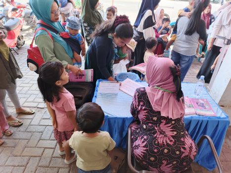 Selama kegiatan berlangsung, para anak dengan didampingi orang tuanya mendapatkan pemeriksaan kesehatan secara lengkap, seperti pengukuran tinggi badan, timbang berat badan, pemberian vitamin tambahan, hingga pengecekan resiko kekurangan zat besi untuk anak.