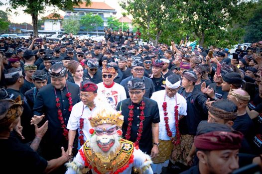 MANGUPURA – Belasan ribu massa memenuhi Wantilan Desa Adat Sedang, Desa Sedang, Kecamatan Abiansemal, Badung, Kamis 19 September 2024. Massa yang tergabung dalam Aliansi Bali Angunggah Shanti mengadakan deklarasi dukungan kepada pasangan calon (paslon) yang bakal bertarung dalam Pilkada di Bali 27 Nopember 2024.