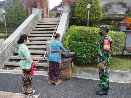 Amankan Giat Ibadah Hari Minggu Agar Berjalan Khidmat, Babinsa Kodim 1617/Jembrana Tetap Ingatkan Jemaat Bahaya Covid 19 Yang Masih Ada
