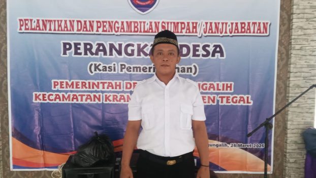 Pers indonesia, Tegal – Kepala Desa Bangungalih, Kecamatan Kramat, Kabupaten Tegal, Kliwon Legowo, resmi melantik Septian Ahmad Naufal sebagai Kepala Seksi (Kasi) Pemerintahan Desa Bangungalih, Kamis (26/3/2026). Prosesi pelantikan berlangsung di Aula Desa Bangungalih dan dihadiri unsur Muspika serta tamu undangan lainnya.