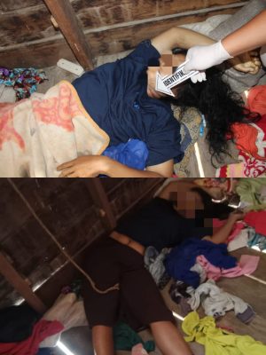 Kemudian anaknya masuk kerumah dan berusaha membuka pintu kamar namun tidak bisa, lalu menyampaikan kepada ayahnya Natola yang merupakan suami korban bahwa korban berada didalam kamar dalam posisi tergantung.