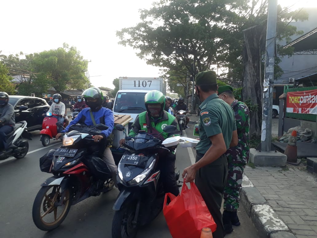 Kodam Jaya, Tangerang ,Persindonesia.com- Babinsa Koramil 02/Btc Kodim 0506/Tgr bersama mitra jaya membagikan nasi kotak kepada pengguna jalan menjelang berbuka puasa, Senin (26/04/2021).