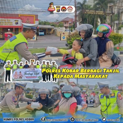 Kapolres Kobar AKBP Yusfandi Usman, S.I.K., M.I.K. melalui Kasat Lantas AKP Ghanda Novidiningrat Gunawan, S.I.K., M.H., menjelaskan bahwa salah satu tujuan kegiatan pembagian takjil ini adalah untuk lebih mendekatkan diri antara Polri khususnya anggota Polres Kobar dan jajaran dengan masyarakat serta mengajak kepada personil untuk dapat memaknai bulan suci Ramadan yang penuh rahmat ini dengan lebih peduli dan berempati terhadap sesama.