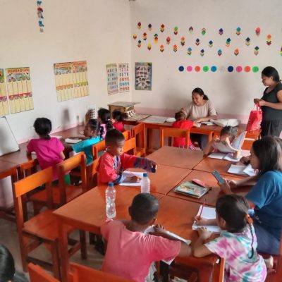 Persindonesia.com NTT, Personel Kompi 1 Batalyon B Pelopor Satuan Brimob Polda Nusa Tenggara Timur Bripka Vinsensius Moat Nurak bersama Istri Ibu Maria Sherly Hilene, S.Pd., M.TESOL., mendirikan rumah belajar gratis yang terletak di dusun Woloara, Kecamatan Koting, Kabupaten Sikka, NTT.