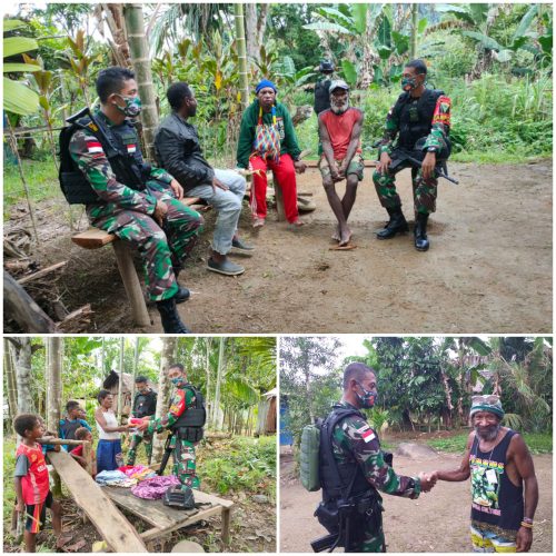 JAKARTA, Persindonesia.com Menjaga dan meningkatkan hubungan harmonis serta membantu meringankan beban warga di daerah penugasannya, Pos Iwur Satgas Pamtas RI-PNG Yonif 403/Wirasada Pratista melakukan anjangsana dengan mendatangi rumah-rumah warga dan membagikan pakaian layak pakai kepada warga di Kampung Kurumkin Distrik Iwur Kabupaten Pegunungan Bintang, Papua.