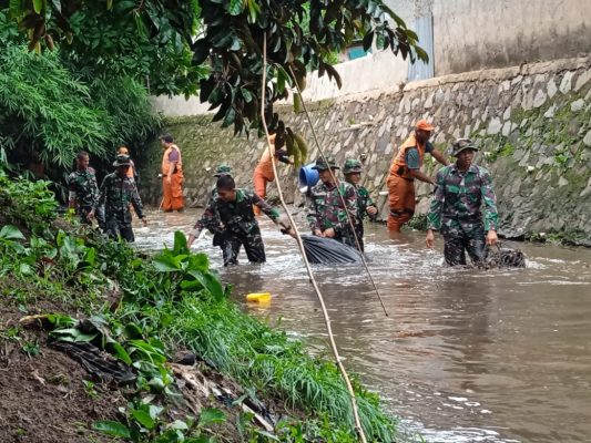 Sedikitnya puluhan prajurit Kopassus diterjunkan untuk mengantisipasi banjir dengan membersihkan sungai dengan menggunakan alat seadanya.