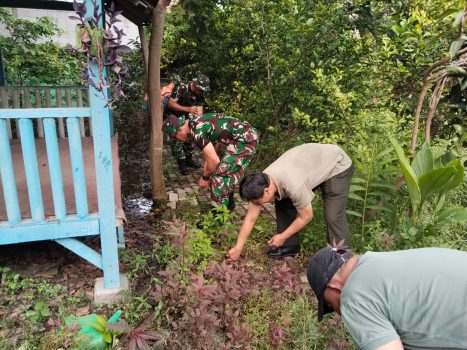 Terlihat di lokasi, warga masyarakat mitra TNI bersama anggota TNI ber semangat dalam melakukan pembersihan lingkungan, dengan penuh keakraban masyarakat dan aparat TNI saling bahu membahu menciptakan kebersihan lingkungan.