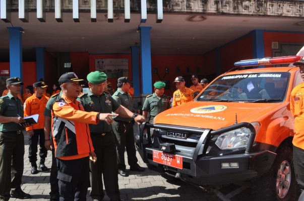 Persindonesia.com Jembrana, Bertempat di Kantor BPBD Kabupaten Jembrana, Kelurahan Dauhwaru, Kecamatan Jembrana, Kabupaten Jembrana, Kodim 1617/Jembrana bersinergi dengan BPBD Kabupaten Jembrana melaksanakan Apel Bersama Gelar Peralatan dalam rangka Kesiapsiagaan Penanggulangan Bencana. Rabu (06/11/2023)