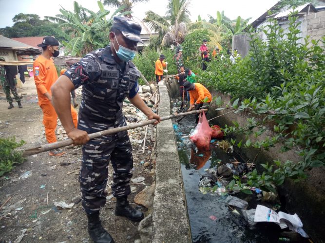 Bangka Barat – Dalam rangka Pencegahan dan pengendalian Penyakit Demam Berdarah Dengue (DBD) serta cegah Banjir di daerah Kampung Tanjung dimana terjadi peningkatan angka DBD dampak cuaca pancaroba, Jumat 03/12/2021 Pos TNI AL Muntok jajaran Lanal Babel, Sat Polairud bersama Pemerintah Kabupaten Bangka Barat melaksanakan gotong royong pembersihan saluran air.
