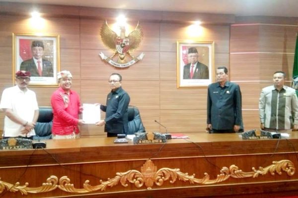 Sidang paripurna penetapan Perda Kabupaten Bangli dipimpin langsung Ketua DPRD Bangli, I Ketut Suastika didampingi Wakil Ketua Nyoman Budiada dan Komang Carles. Sementara dari eksekutif dihadiri langsung Bupati Bangli Sang Nyoman Sedana Arta, Wakil Bupati Wayan Diar, pimpinan Forkompinda, pimpinan OPD di lingkungan Pemkab Bangli serta instansi terkait lainnya.