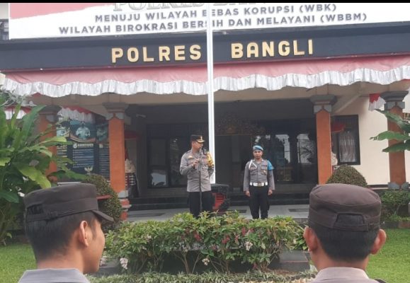 Bangli – Bertempat di Lapangan apel Polres Bangli dilaksanakan apel pagi jam pimpinan dalam rangka pelaksanaan tugas rutin yang dipimpin oleh Waka Polres Bangli Kompol I Nyoman Gatra, S.H., M.H.