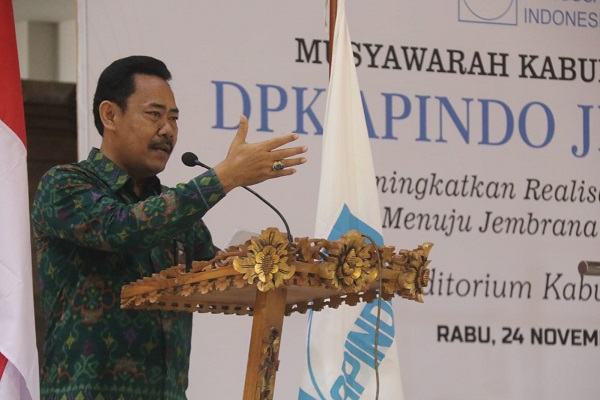 Bupati I Nengah Tamba dalam sambutannya yang dibacakan Staf Ahli bidang Kemasyarakatan dan Sumber Daya Manusia I Komang Wiasa minta agar seluruh pengusaha anggota Apindo Kabupaten Jembrana untuk senantiasa meningkatkan kualitas produk dan layanan.