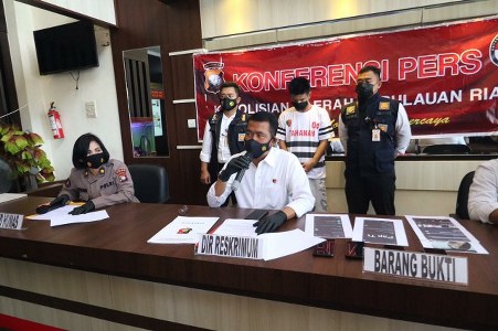 Hal tersebut diungkapkan oleh Dir Reskrimum Polda Kepri Kombes Pol Arie Dharmanto, S.Sos., S.Ik., didampingi Kasubdit IV Dit Reskrimum Polda Kepri AKBP Dhani Catra Nugraha, SH., S.IK., MH., dan Kaur Pullah Inprodok Subbid PID Bid Humas Polda Kepri Kompol Rosmini Manan, SH., saat Konferensi pers di Mapolda Kepri pada, Senin (1/2/2021).