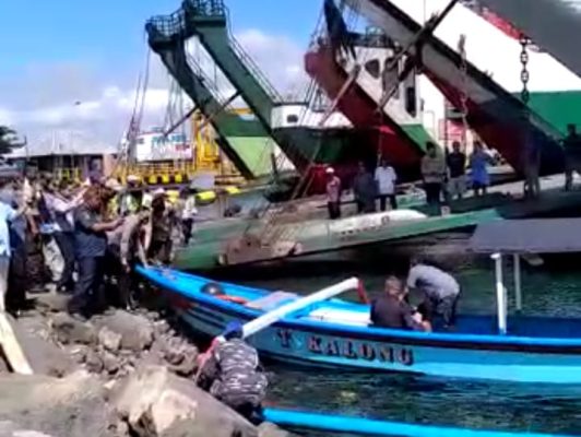 “Awalnya korban dibawa dengan kendaraan kecil, setelah naik ke KMP Agung Samudra IX sekira 300 meter dari dermaga, korban memberontak dan sempat dipegang oleh keluarganya namun terlepas sehingga korban jatuh dari atas kapal dan terseret arus,” terangnya.