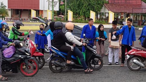 Semua atlit berkumpul dan membagikan sebanyak 250 bungkus takjil ke semua pengendara yang melintas, serta kaum Duafa berada di sekitar area tersebut.