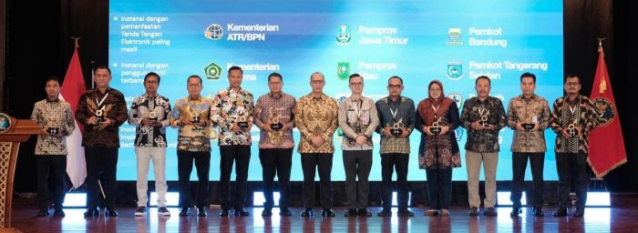 Penghargaan tersebut diserahkan dalam seremoni yang digelar di Gedung Sasono Langen Budoyo, TMII, Kamis (20/11/2025). Pengakuan ini diberikan setelah ATR/BPN dinilai konsisten menerapkan TTE di berbagai lini proses bisnis, sehingga mempercepat layanan dan meningkatkan keamanan dokumen negara.