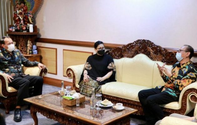 Denpasar (Persindo) – Ketua Dewan Kerajinan Nasional Daerah (Dekranasda) Provinsi Bali Ny. Putri Suastini Koster menerima audiensi Direktur Mangga Dua Square Ida Bagus Ketut Kusumajati di Ruang Pertemuan Taman Budaya, Rabu (16/2/2022).