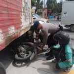 Personil Brimob Bantu Warga Korban Laka Lantas di Jalan SM.Raja Medan