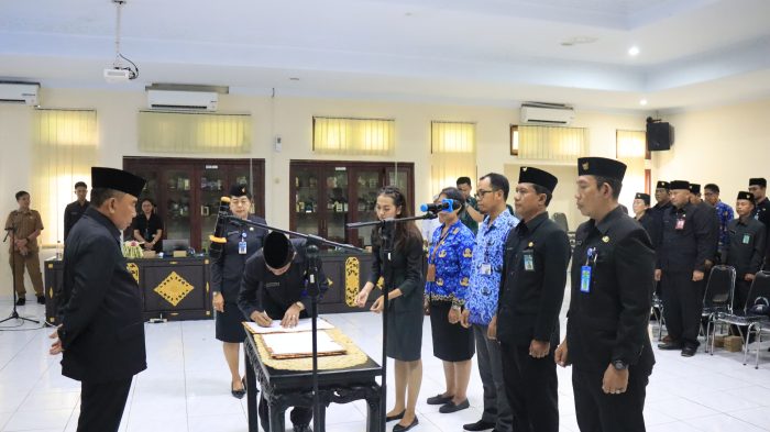 Persindonesia.com Jembrana – Awal tahun 2024, gerbong mutasi Pemerintah Kabupaten Jembrana kembali bergerak. Senin (15/1), Bupati Jembrana, I Nengah Tamba melantik dan mengambil sumpah 30 jabatan administrator dan pengawas di lingkungan Pemkab Jembrana.