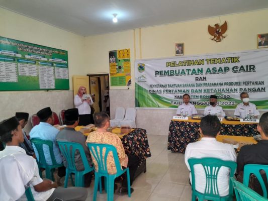 BONDOWOSO, Persindonesia – Wewakili Danramil 0822/15 Klabang Batituud Pelda Riko Nanda R. menghadiri pelatihan Tematik Pembuatan Asap Cair Dan Penyerahan Bantuan Sarana Dan Prasara Produksi Pertanian yang diselenggarakan oleh Dinas Pertanian Dan Ketahanan Pangan Kabupaten Bondowoso bertempat di Balai Kecamatan Klabang Kabupaten Bondowoso, Kamis (28/7/2022).