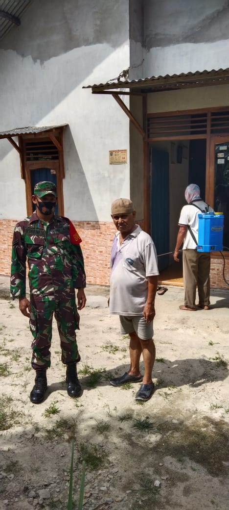 Disamping melaksanakan penyemprotan juga mengingatkan kepada warga untuk tetap mematuhi Protokol Kesehatan seperti menjaga jarak,memakai masker ,mencuci tangan dan hindari kerumunan masa.”Ungkap Serda Sarwoedi.