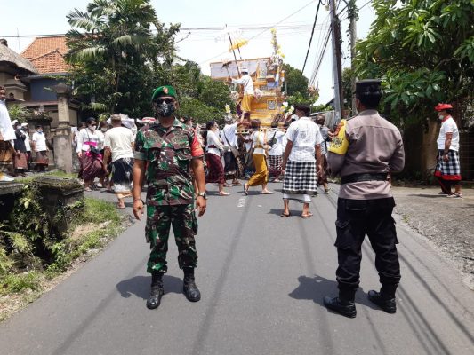 Babinsa dan Bhabinkamtibmas Desa Mas Pantau Upacara Pelebon