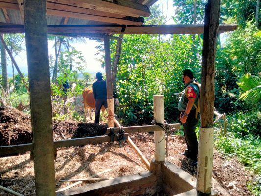 Babinsa Delodberawah Dampingi Petugas Pertanian Dan Pangan Vaksinasi Puluhan Ternak Warga