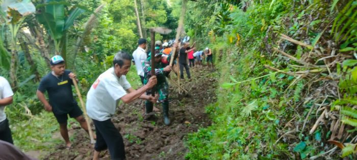 Persindonesia.com Jembrana, Babinsa Desa Batuagung Koramil 1617-01/Jembrana Pelda I Nyoman Suarken mengikuti aksi gotong royong meratakan dan pembersihan jalur jalan di Tempek “Karya Darma” Banjar Panca Seming, Sesa Batuagung, Kecamatan Jembrana, Kabupaten Jembrana. Minggu (25/06/2023)